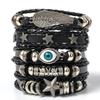 Name:6pcs/set Black Punk Skull & Star Shaped Alloy & Pu Leather Bracelet