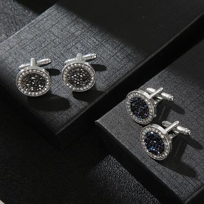 High Grade Men's Zircon Luxury Zircon Cufflinks Classic Round Shirt Cuff Buttons Alloy Wedding Suit Accessories Business Gift
