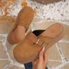 Women's Wide Width Closed Toe Mule Slippers - Buckle Detail Platform Slides for Fall, Solid Color House Shoes