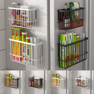 1PC Organizer Rack Kitchen Wrap Holder Wall-Mounted Refrigerator Side Shelf Metal Storage Baskets