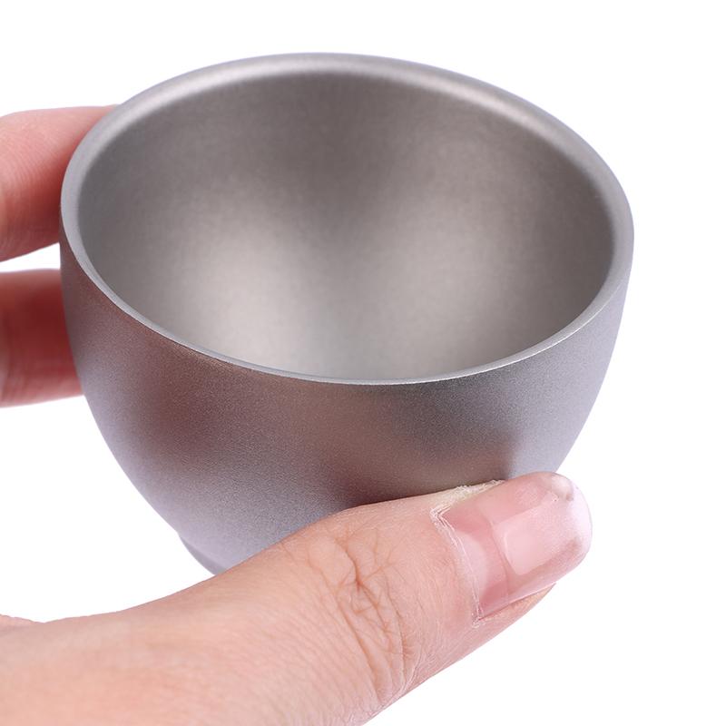 1/4Pcs Double-Layer Small Tea Cups Pure Titanium Outdoor Portable Traveling Picnic Cookware Single-Person Tea Cup Hiking Tea Cup