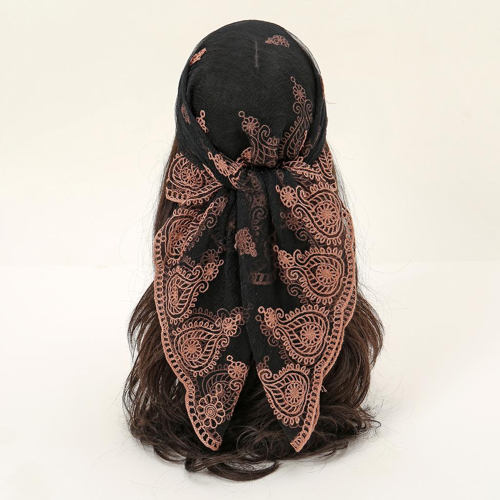 Square Yarn Scarf Floral Embroidery Lace Hijab Headscarf Headband Summer Breathable Bandana For Women Elegant Turban Hair Wrap