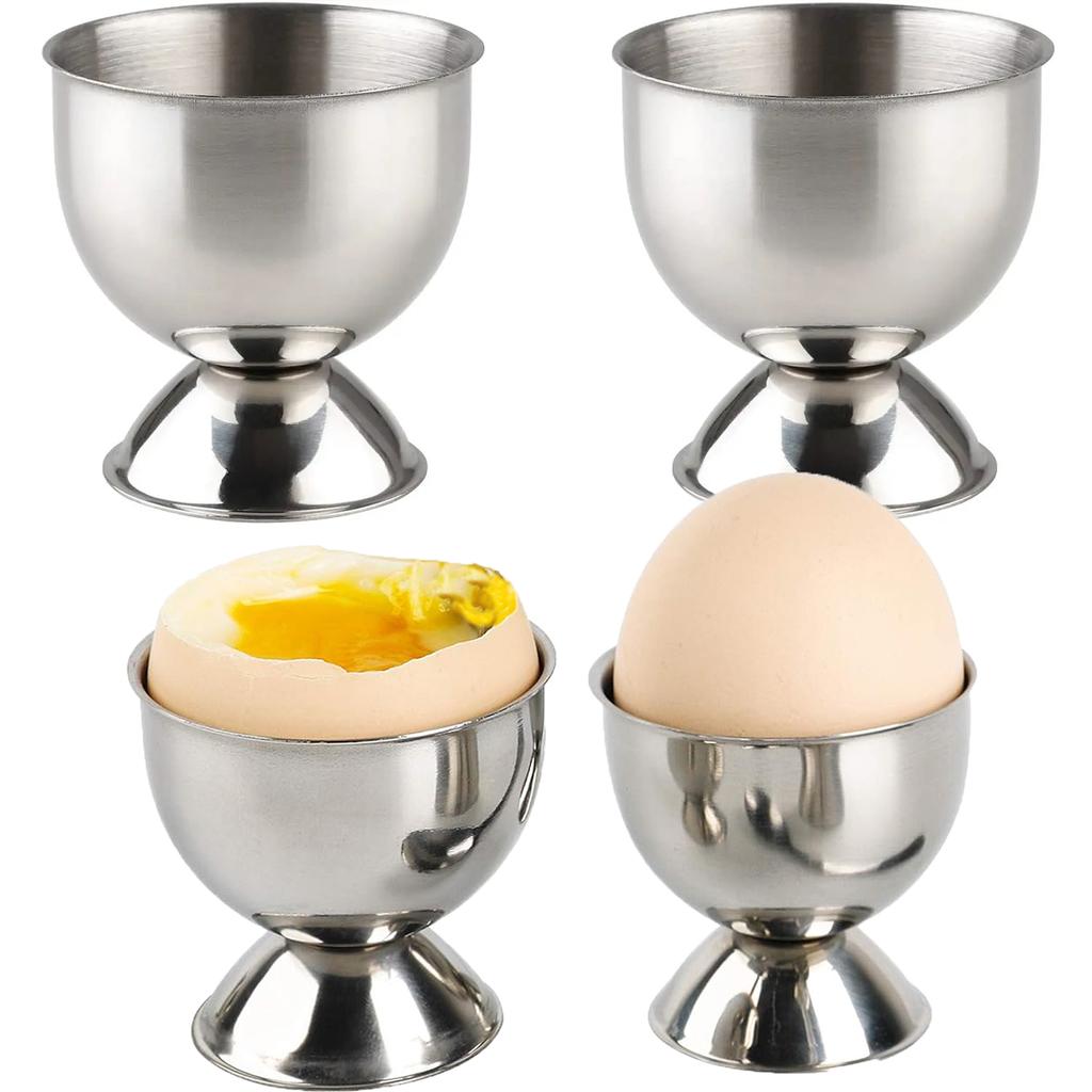 4PCS Egg Cups Stainless Steel Soft Boiled Egg Holder Breakfast Tray Cooking Tool Egg Storage Holder for Brunch Kitchen Gadgets