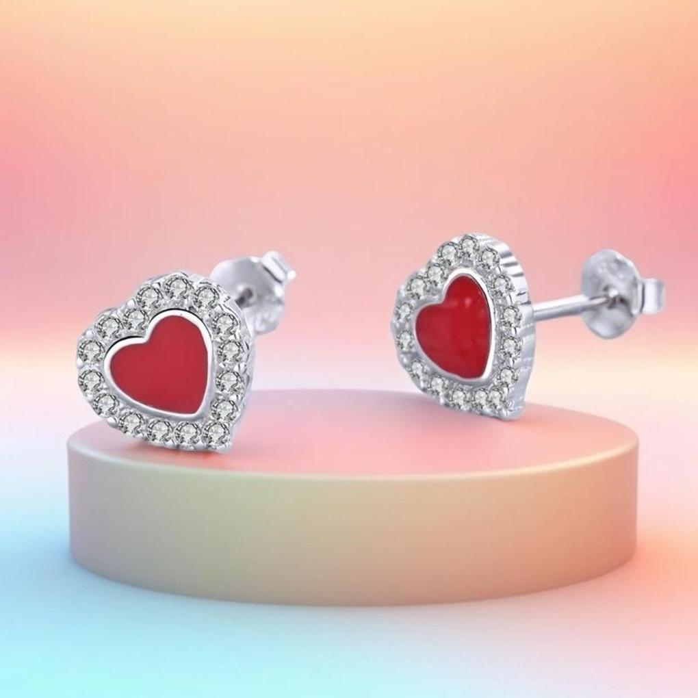 Women's Silver 925 Cubic Red Heart Simple Earrings
