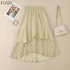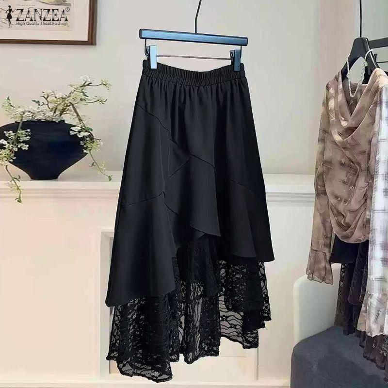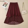 ZANZEA Women Elastic Waist Casual Lace Patchwork Irregular Pleated Skirts
