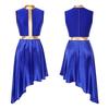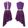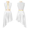 Women's Lyrical Dance Performance Dress: Color Block Patchwork with Invisible Back Zipper & Flowy Asymmetrical Hem