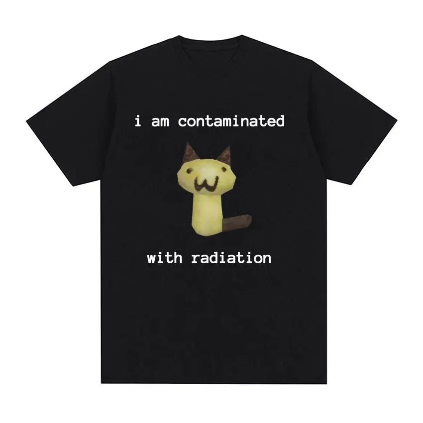 Vintage T Shirt I Am Contaminated with Radiation Funny Cat Meme Graphic Short Sleeve Print Cotton ONeck T Shirts Unisex