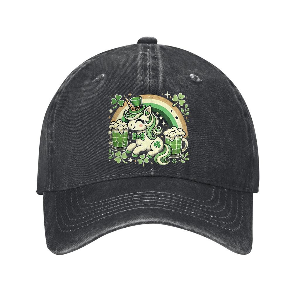 St Patrick Unicorn Baseball Cap Festive Beer Rainbow Distressed Denim Adjustable Hat for Men Women