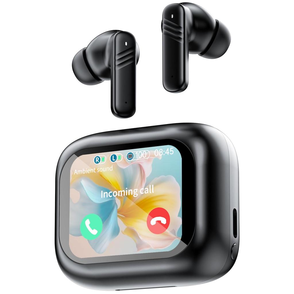 Multifunctional Smart Touchscreen: These touchscreen earbuds feature a color touch display. Control your music, switch songs, answer and end calls, and activate noise canceling mode from either the earbuds or the charging case. The touchscreen also features volume control, camera control, 7 language options, wallpaper switching, screen brightness adjustment, earbud search, flashlight, and timer functions.