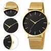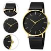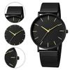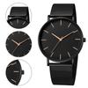 Trendy Minimalist Men’s Watch Modern Black Mesh Band Quartz Watch Chic Gold Accent Matte Black Face Slim Round Case Wristwatch