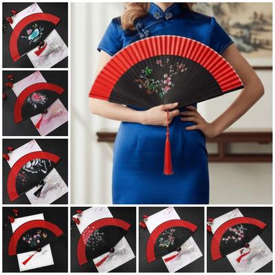 2025 Silk Vintage Folding Fan Bamboo Colorful Hand Fan Hand Fan Tassel Elegent Shank Classical Dance Fan Clothing Accessories